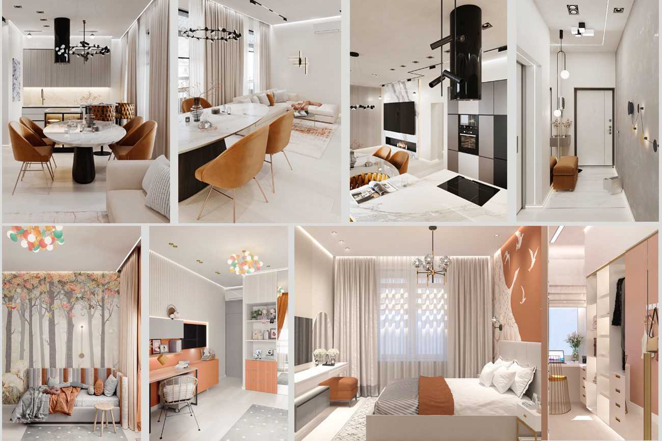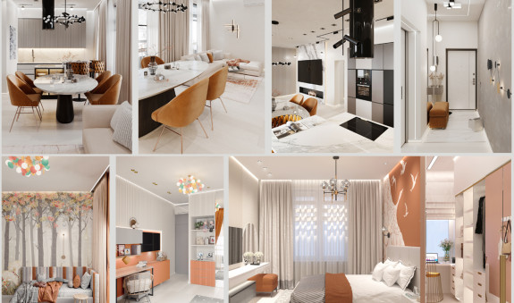Квартира сильно пострадала после пожара и пришлось ее , буквально заново, возвращать к жизни. Основным требованием было сделать ее максимально светлой и позитивной в современном стиле.